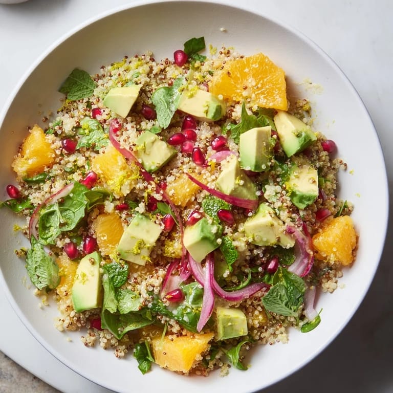 Save A vibrant, refreshing bowl packed with zesty citrus, creamy avocado, and protein-rich quinoa—perfect for a light lunch or a nourishing side.