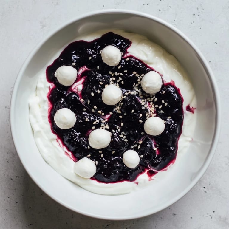 Save There's something magical about the moment when a simple bowl transforms into edible art. I discovered this dish on a lazy Sunday afternoon, watching cream swirl into darkness like nebulas forming in slow motion. My friend had brought over a jar of homemade blackberry jam and a wedge of tangy goat cheese, and instead of making breakfast or dessert properly, we started playing with them on yogurt, creating these ridiculous spiral patterns. What began as kitchen fooling around became something so beautiful we couldn't bring ourselves to eat it right away—we just sat there, admiring our cosmic creation before the first spoonful.