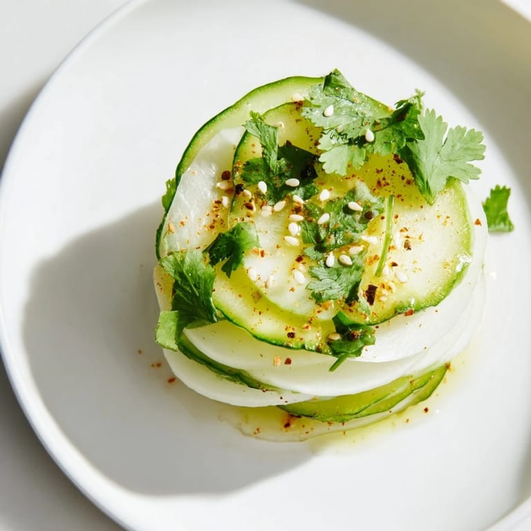 Save A refreshing, crunchy appetizer or side featuring crisp jicama and cucumber slices stacked with a zesty lime-chili dressing.