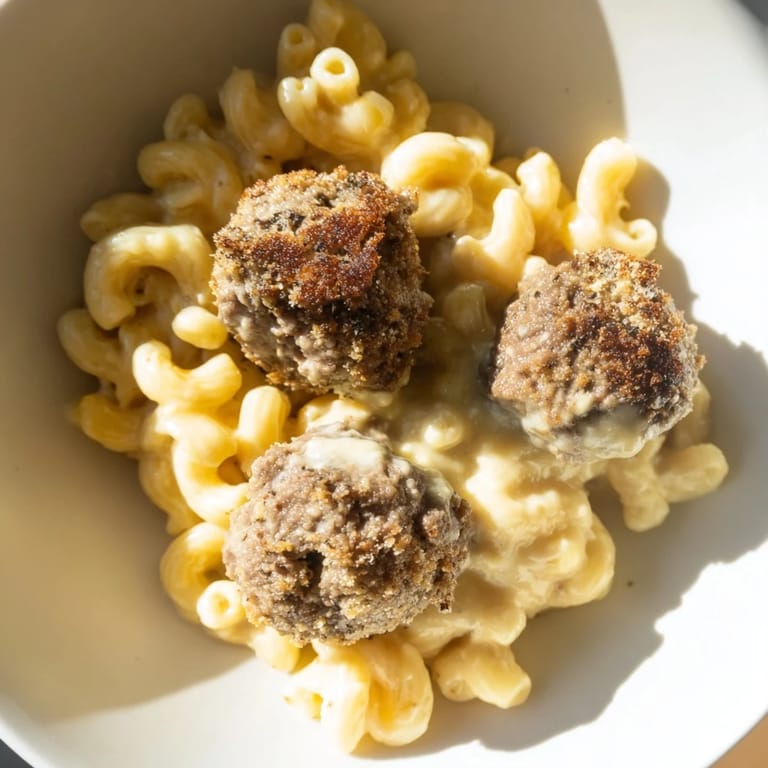 Save There's something about the smell of meatballs browning in the oven that makes a kitchen feel like home. I discovered this bake on a random Tuesday when I had elbow pasta, ground beef, and the sudden urge to make something that would feed my crew without requiring me to stand at the stove for hours. What started as a simple idea—why not combine meatballs with mac and cheese?—turned into the kind of dish that gets requested at every family gathering now. It's the sort of recipe that tastes like comfort tastes.
