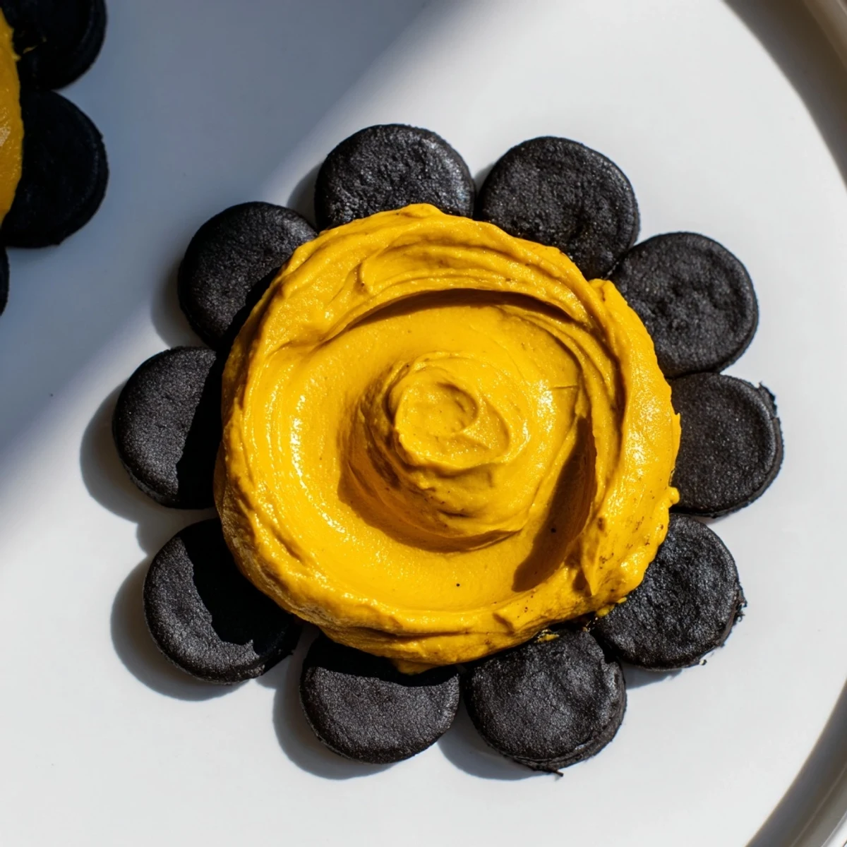 - Spoon the dip into the center of your serving plate or board and use the back of a spoon to create a thick circle. Arrange your charcoal crackers in a ring around the dip, points facing outward, like a sun rising over a dark horizon.