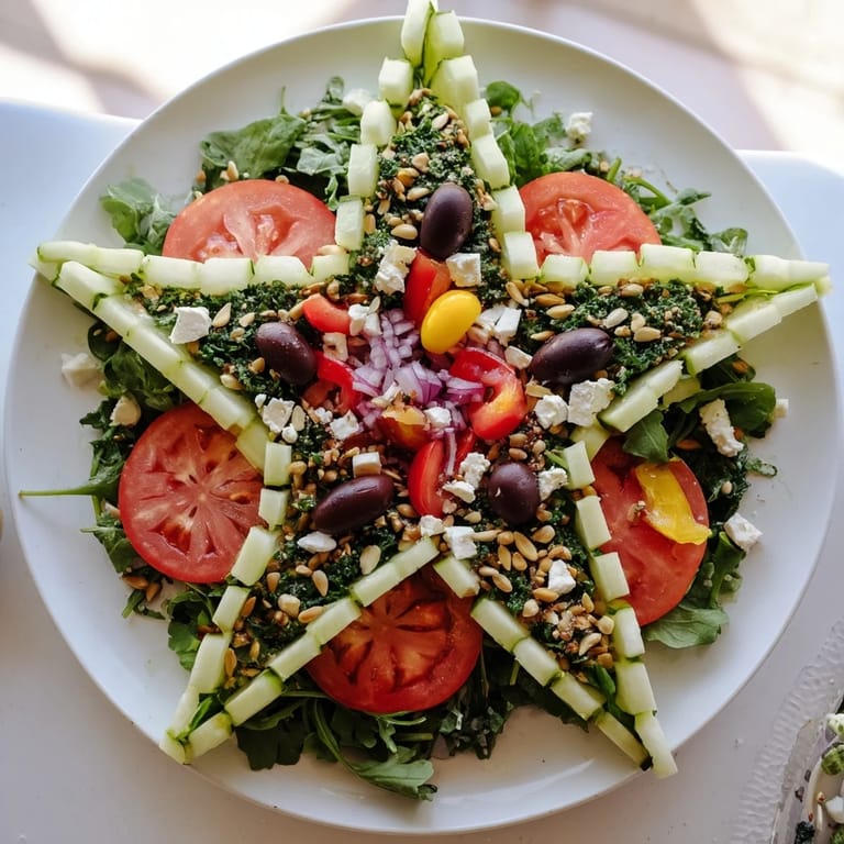 Save I still remember the moment I decided to turn a simple salad into something unforgettable. It was the night before Hanukkah, and I wanted to create something that would make everyone at the table pause and smile before we even took our first bite. That's when the Star of David salad was born—a dish that transformed our holiday table into something truly magical, where fresh vegetables became art and every color told its own story.