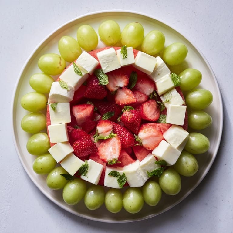 - Fresh mozzarella or feta cheese (150 g): This is your white rind layer, the creamy surprise between the outer edge and the fruit. Fresh mozzarella stays softer and more delicate, while feta gives you crumbly texture and tanginess. Choose based on your crowd's preferences.