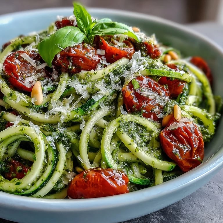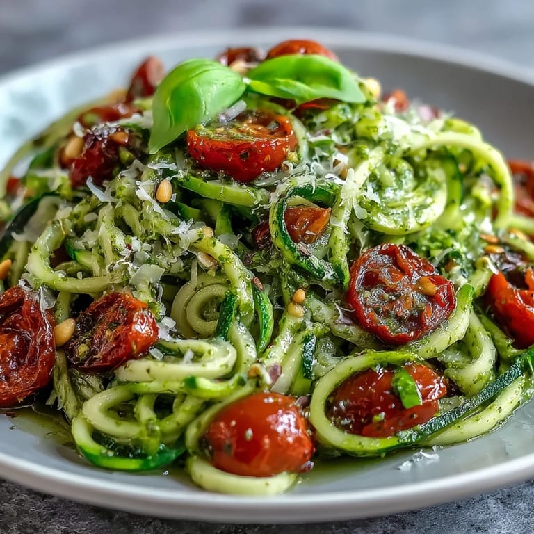 Save I was first drawn to this dish after catching the scent of basil wafting from a friend's backyard, where a handful of zucchini plants sprawled under the summer sun. That afternoon became a little experiment in the kitchen, with laughter echoing as we spiralized one zucchini after another. The brightness of the pesto mingled with the tomatoes was like a burst of summer on the plate. I still remember the way the zucchini noodles tangled in the bowl, perfectly slick with olive oil and flecked with Parmesan. Somehow, it tasted like the season itself.